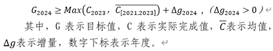 5.量化指标分为总量指标(经费金额等)和均量指标(通过率等),原则上二者均不能低于2023年实际完成值、2021-2023年实际完成均值,并应有适当增幅,即应满足如下公式: