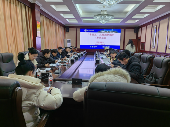 为深入贯彻落实《教育强国建设规划纲要(2024—2035年)》及党中央、自治区“十五五”规划建议相关部署,贯彻落实学校“十五五”发展规划编制工作动员会暨工作总结部署会相关要求,1月23日上午,beat365手机版官网入口组织召开了“十五五”发展规划编制工作推进会。会议由beat365手机版官网入口处长黄敬秀主持。组织部、人事处、学工处、教务处、研究生院、科技处、财务处、后勤处、对外合作交流处、网络与信息中心等10个“十五五”专项规划牵头单位的负责人及执笔人参加了会议。