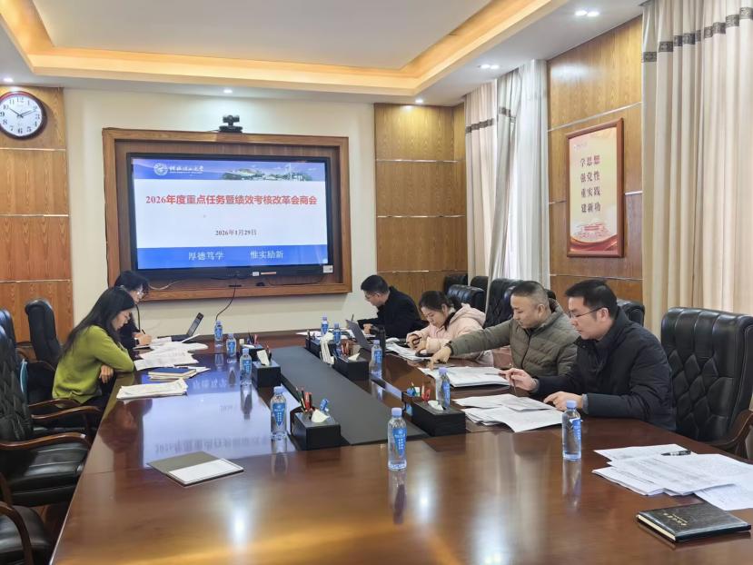 2026年1月29日,beat365手机版官网入口、人事处在屏风校区第二会议室召开2026年重点任务暨绩效考核改革会商会,聚焦学校重点业务工作考核指标与绩效分配改革方案核心议题研讨交流。