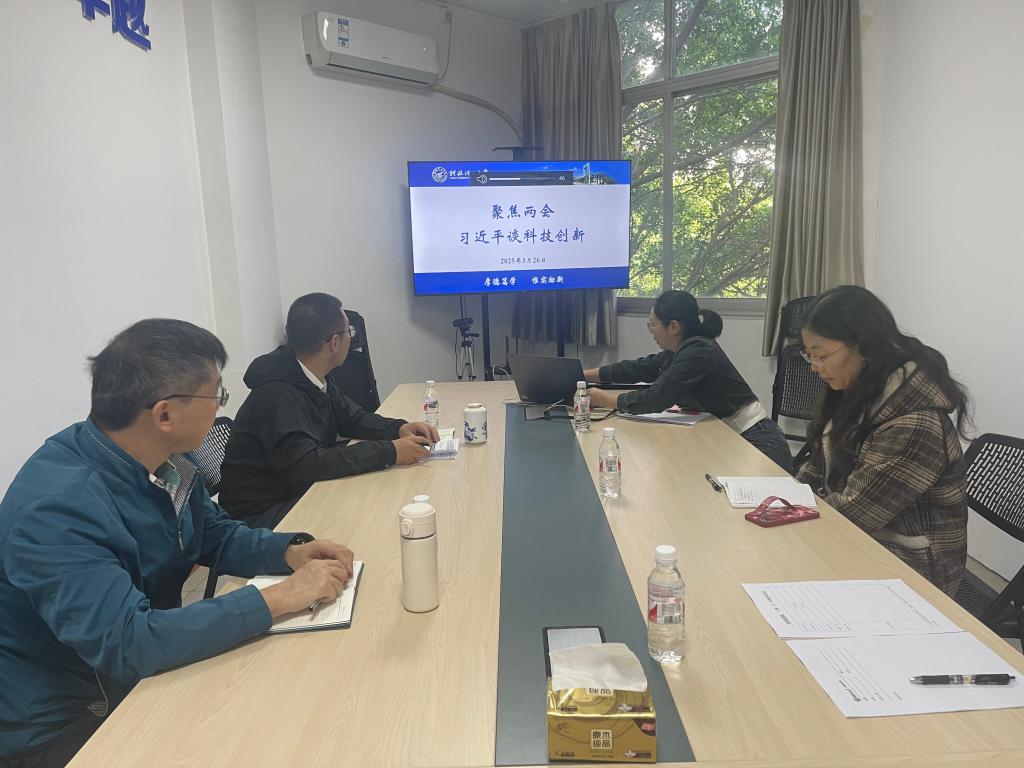 在学习讨论环节,党员们结合自身工作实际,就如何在学校发展规划中更好地融入科技创新理念,推动学校科技创新能力提升展开了热烈讨论。随后,代俊峰对本次主题党日活动进行了总结,强调全体党员要持续深入学习全国两会精神,深刻领会习近平总书记关于科技创新的重要指示,将学习心得转化为推动工作的强大动力。在今后的工作中,要积极谋划学校科技创新发展,加强顶层设计,完善体制机制,为学校实现高质量发展提供有力支撑。