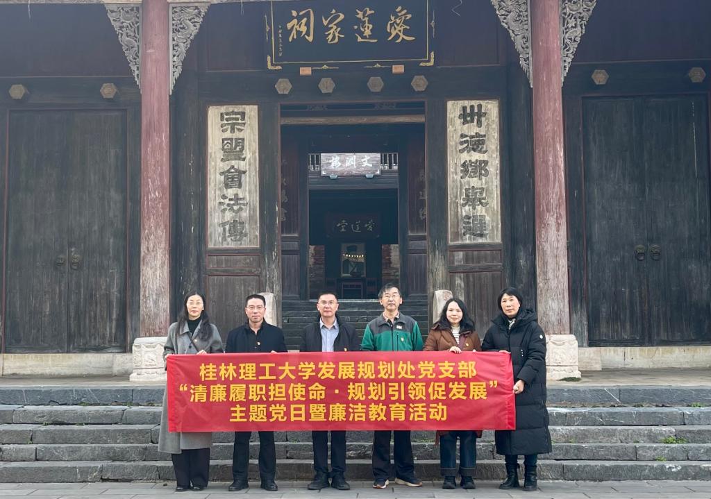 为深入推进支部廉洁文化建设,教育引导党员干部筑牢拒腐防变思想防线,12月27日下午,beat365手机版官网入口党支部赴桂林市灵川县九屋镇江头村爱莲家祠,开展“清廉履职担使命・规划引领促发展”主题党日暨廉洁教育活动。